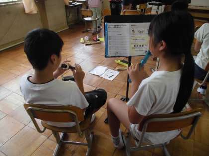 音楽の学習で,リコーダーの二重奏に取り組んでいます。