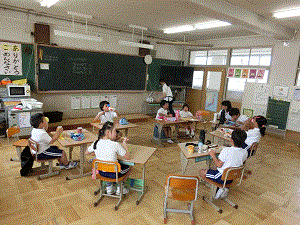 午前中たくさん動いて少し疲れた表情を見せていた子どもたちも,お家の方が用意してくれたお弁当を「おいしい」と言いながら,もぐもぐ食べていました。おいしいお弁当を食べて元気になった子どもたちは,午後からの活動を元気いっぱいに活動できました。