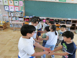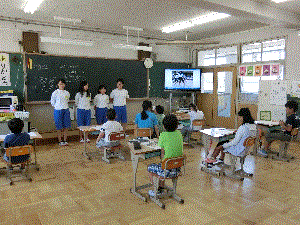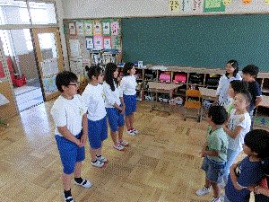 楽しい読み聞かせをしてくれたり,優しい声をかけてくれたり,休み時間に外で一緒に遊んでくれたお兄さんとお姉さん。チャレンジ体験が終わる直前にひまわりの教室にあいさつに来てくれました。