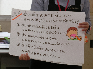 今日は,4月以来の体重測定をしました。体重測定の前に口についての話を聞きました。みんながやってしまいがちな,流し込み食べが体に良くないという事を知り,子どもたちも驚いていました。