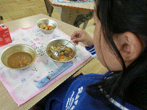 今日は給食時間の前からいい匂いがしていました。その正体は,今日の給食メニューであるカレーでした。