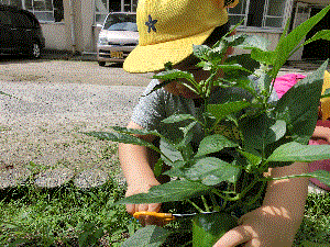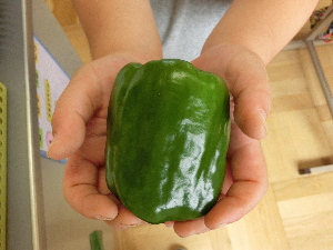 ピーマンの一番果を収穫しました。一番果は,その後の野菜の成長にも影響が出てしまうため,早く積んだ方が野菜が良く育つと言われています。