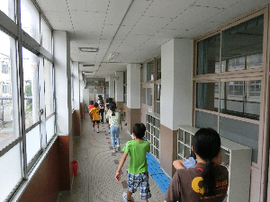 事前の学習では,4月に起きた熊本地震や今なお復興が続く東日本大震災,子どもたちがまだ生まれていない時に起きた阪神淡路大震災についての話をしましたが,子どもたちは真剣に聞いていました。