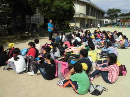 5年生が,花背山の家から帰ってきました。一人一人が元気に「ただいま!」とあいさつをしていました。疲れもあるでしょうが,それよりも「楽しかった。」という声がたくさん聞こえていました。