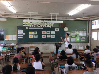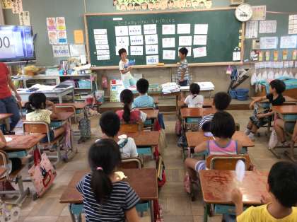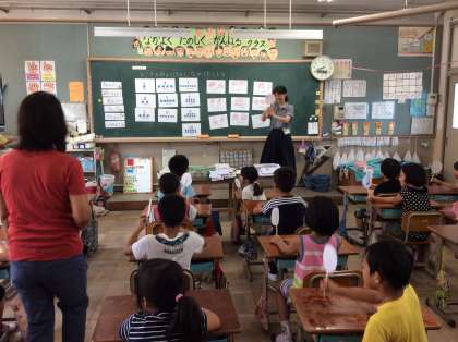 2年生は「Tiny Bopper」の歌やチャンツを通して,いろいろな動きを英語で話していました。自分のオリジナルBopperのペープサートを楽しそうに動かしていました。