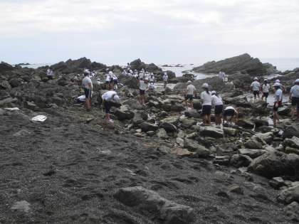 宮崎浜に磯観察に行ってきました。何か海の生き物はいないか探しています。帰ってきてからはプールに入りました。子供達はとても楽しそうです。