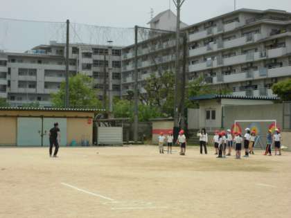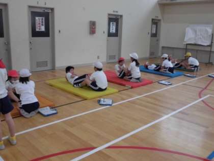 大藪小学校では,体力テストの時,2つの学年がペアを組んで行います。今日は4年生と2年生,5年生と3年生がそれぞれペアを組んで行いました。上の学年は,やり方を教えたり励ましたりする中で,お兄さんお姉さんとしての自覚が芽生えていきます。下の学年は,助けてもらうことでスムーズに方法を理解し,仲良くなることができます。