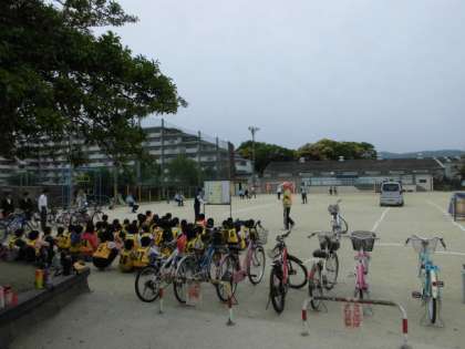今日も多くの方々のご協力のもと,5年生の自転車免許教室が行われました。昨年度4年生の時にも一度経験しているのですが,新たな気持ちで頑張りました。