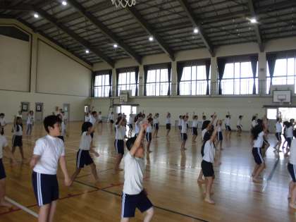運動会に向けて,学年でロックソーランに取り組んでいます。