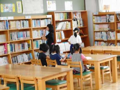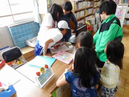 休み時間に図書館に行って,本を見ました。