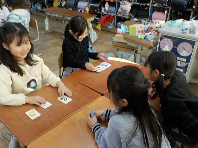 覚えた色のカードを使って、買い物のやりとりを練習しました。
