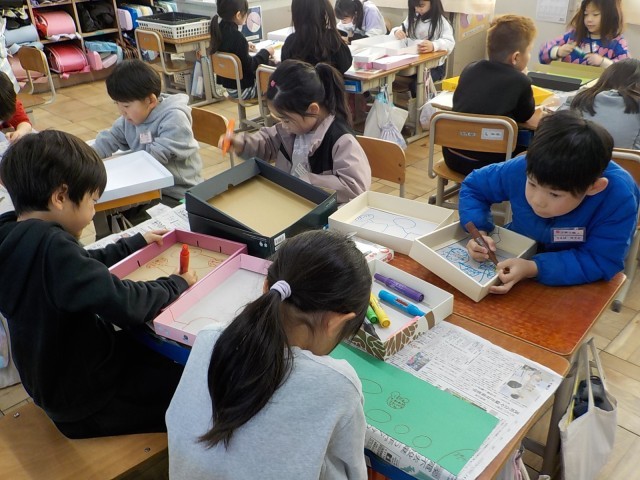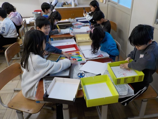 箱を利用してすごろくを作っています。