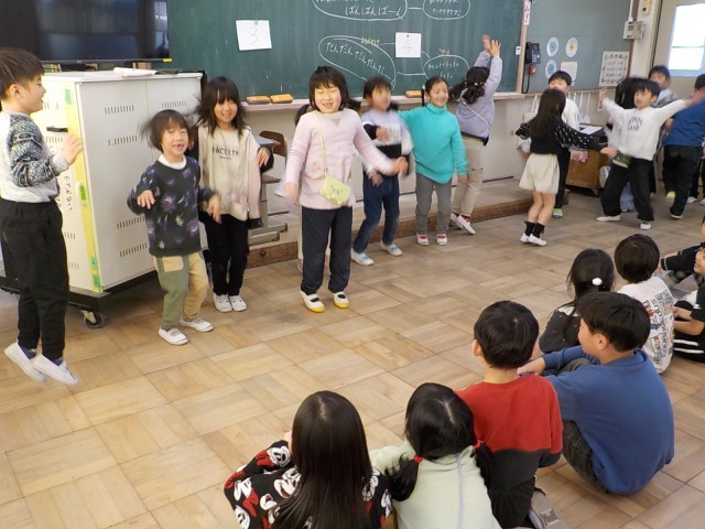 鑑賞曲「クシコスポスト」では、旋律にあわせて踊りました。