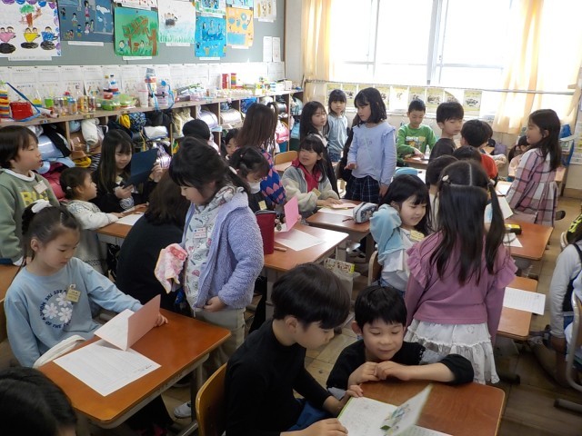 1年間お世話になった2年生へ、書写の時間に作った「ありがとう」の手紙を持っていきました。