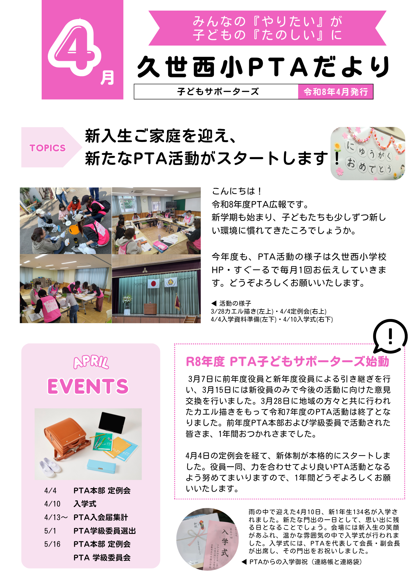 4月のPTA活動についてのお知らせです。ぜひご覧ください。