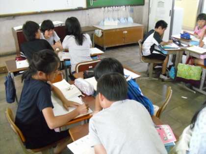 きき手と話し手と記録者の三人一組になり,「休日の過ごし方」についてインタビューしました。