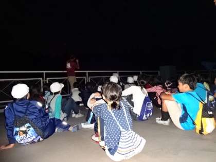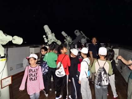 夜は予想に反して(!?)天気も良く,「天体観測」ができました。木星・スピカ・アークトゥルスの3つの星を観測しました。