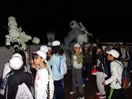 「木星」は木星本体の縞模様や4つの衛星までもが見られました。また「スピカ」や「アークトゥルス」は色までくっきり見え,星の温度や寿命の違いを教えてもらいました。また,「ベガ(おりひめ星)」や「アルタイル(ひこ星)」も上がってきました。