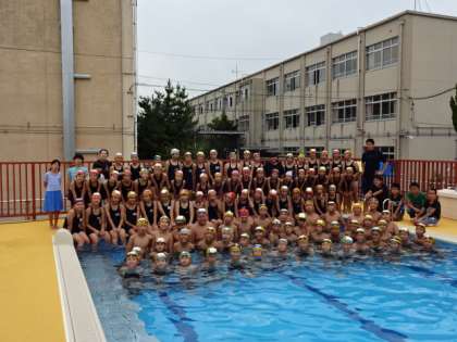 プールで集合写真(6年)