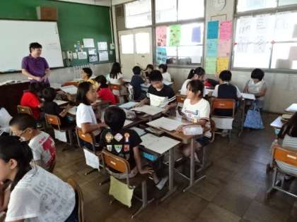 物とサービスの違いについて学んだり,店長や会計係などがどのような仕事をしているかなどについて学んだりしています。