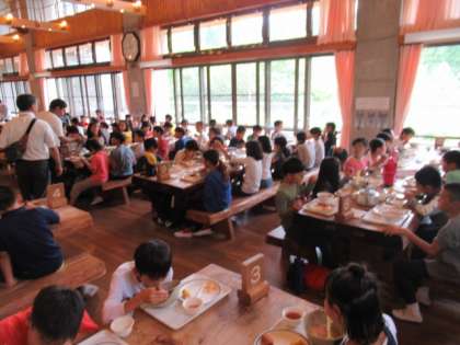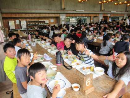 山の家最終日の昼食は大薮小学校と合同の昼食でした。