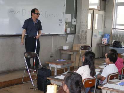 7月3日の総合的な学習の時間に,京都府視覚障害者協会から来られた松永信也さんとの交流学習がありました。