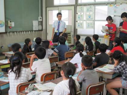"I like Mondays."の単元に取り組み,月曜日〜日曜日までの言い方や曜日を尋ねる言い方などを学び,最後には自分の好きな曜日と同じ曜日を好きな人を見つけました。1年生から外国語活動に取り組み,外国語活動を生き生きとした様子で楽しむ4年生。この授業でも友達と笑顔でコミュニケーションをしていました。