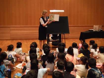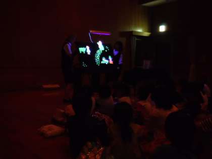 久世ふれあいセンター図書館では,絵本の読聞かせとペープサートの上演をしていただきました。ブラックライトを使用したペープサートには,子どもたちも大喜びでした。