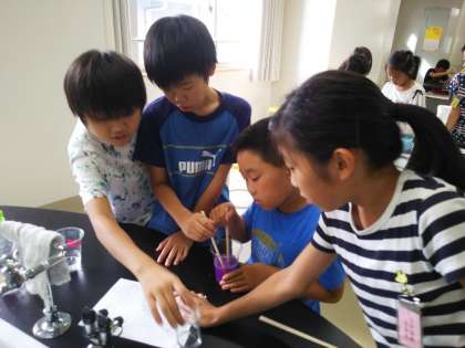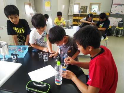 科学クラブではみんなが楽しみにしていた「スライム」作りをしました。材料の割合を変えると,ドロドロ,ベタベタ,カチカチ・・・いろいろなスライムができました。次のクラブ活動でも,異学年で協力して取り組みたいと思います。