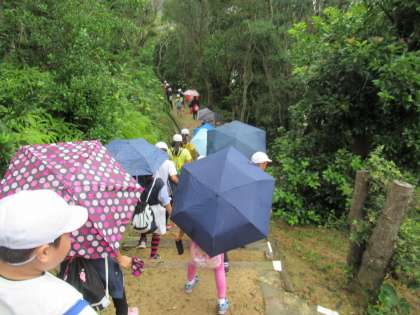 午後の一番目の活動はナイトゲーム下見。今晩,ナイトゲームを行うルートを下見しました。登ったり降りたり細い道だったりしますが,今晩のナイトゲームではグループ全員で協力してまわっていきます。