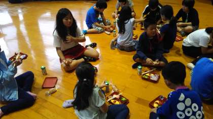 食事係のあいさつのあと,今朝も楽しくおいしい朝ごはんをいただきました!