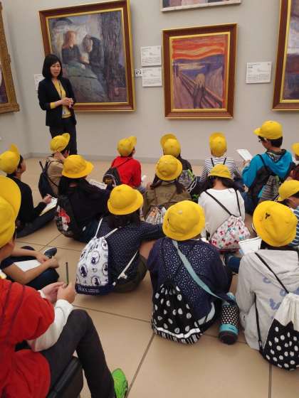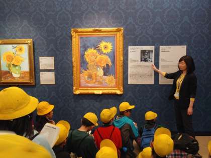 ガイドさんに絵の紹介をしてもらうと,新たな発見がたくさんあります。修学旅行のしおりに書ききれない児童もたくさんいます。絵画をみるポイントがわかると,次に鑑賞するときも楽しみにが増えますね。