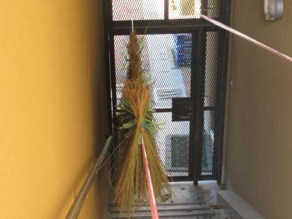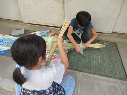 3年生は自分たちの稲をまとめてしめなわに使うために干しています。