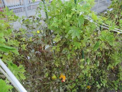 ツルレイシは,葉が黄色くなったり枯れてしまったりするものが出てきました。実についても黄色くなり,実が割れて中から種が出てきているものが多くなりました。