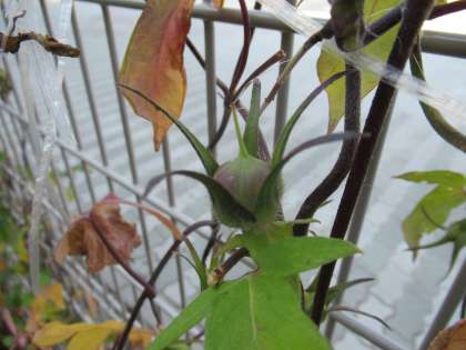 アサガオはまだ咲いているものもあります。しかし,一方で葉が枯れてきているものも多くなってきました。実はだんだんふくらんできており,いつでも中が割れそうな勢いです。