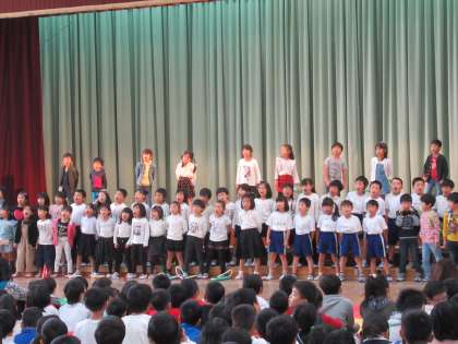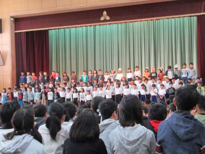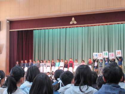 1年生から学習し,「できる」ことがたくさん増えた1年生。体育のマット運動など,できるようになったことを発表してくれました。