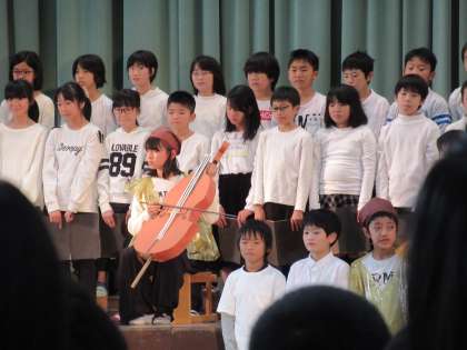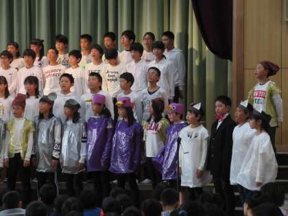 宮沢賢治の世界を劇と歌で表現しました。また最後には「涙をこえて」の合唱。6年生として,最高学年として,学年の心を一つにした素敵な発表でした。