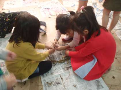 こちらのクラスでは,みんなで協力して作っています。