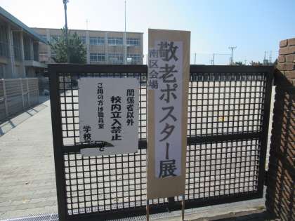 11日(日),久世西小の体育館で「南区敬老ポスター展」がありました。おじいさん,おばあさんへの思いがこもったたくさんの作品が飾られました。