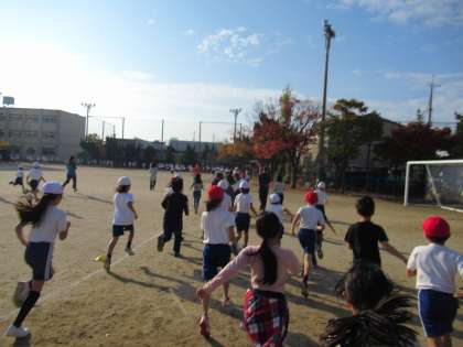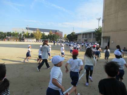 21日(水)の低学年のマラソン大会に向けて,朝学習の時間を使い,5分間自分のペースでジョギングをし,体を慣らしていきます。子どもたちはみんな一生懸命走っていました。そして,走り終わった後は少し息を切らしながらも気持ちよさそうにしていました。朝から走るのは体や脳を起こすのにも最適なのかもしれませんね。
