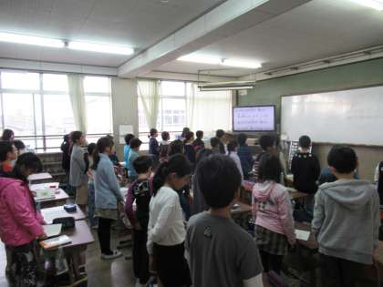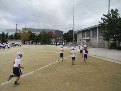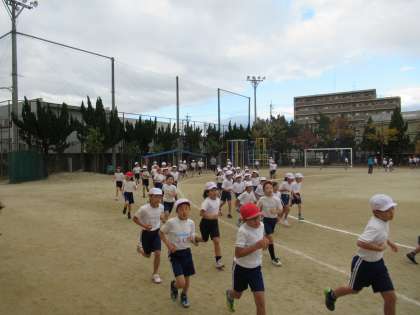 14日(水)も1〜3年生は健康マラソン。4〜6年生は全校合唱「ありがとうの花」を歌いました。