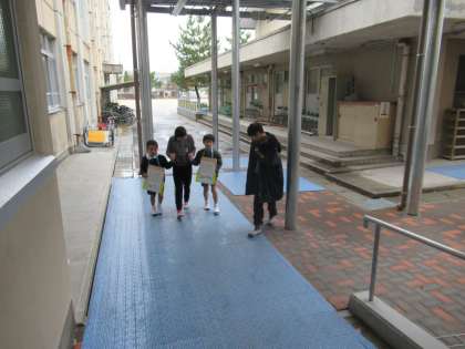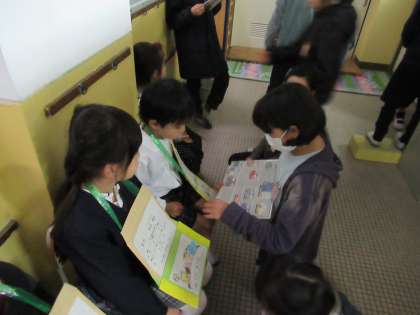 案内するときはいつも手を握って案内するところ,話をするときはかがんで目の高さまで体を下げて話すところ,新1年生のために絵本の読み聞かせを行うところ様々な場面で新1年生への心づかいが見られました。新1年生は,来年度5年生が新6年生になったときにかかわっていく学年です。