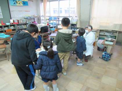案内役と各健康診断のお手伝いは5年生の子どもたちです。初めは少し緊張した面持ちだった新1年生も,5年生に案内してもらううちに,緊張も和らぎ,楽しそうに話をしていました。5年生も準備も含めてとても意欲的に動き,新1年生をおもてなしていました。