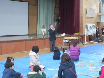 約80人が参加し,世界に一つだけのオリジナルのしめなわを作りました。