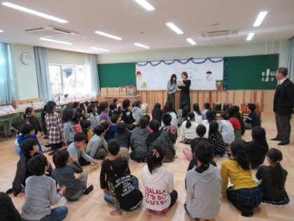 校長先生のお話のあとは,クリスマスプレゼントをめぐっての○×クイズを行いました。