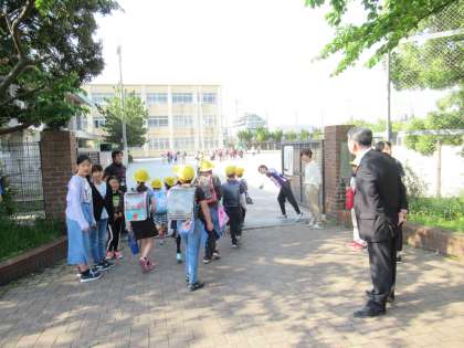 今回のあいさつ運動では,代表委員会の3・5年生が北門,4・6年生の正門に立ち,あいさつ運動を行いました。