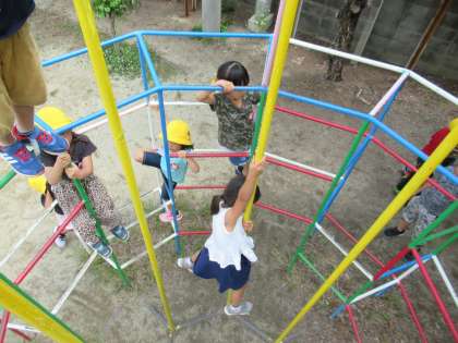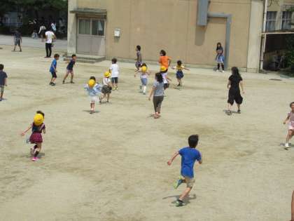 上から運動場を眺めてみると,たくさんの子どもたちが様々な場所で,様々な遊びをしているのがわかります。