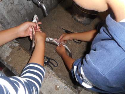 5年生 山の家2日目「魚さばき」4