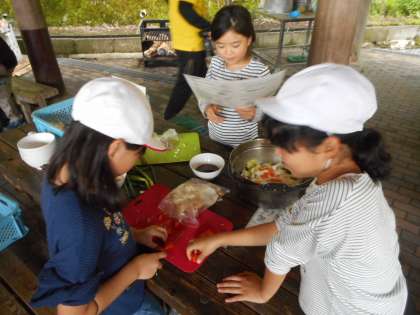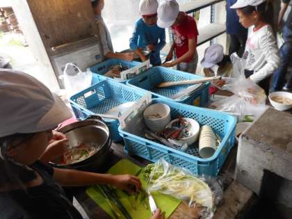 5年生 山の家2日目「鶏のすき焼き風煮」2