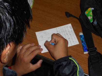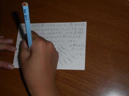 はがきの書き方は様々でした。文章で表現する子,イラストで表現する子,縦書き,横書き,どれも個性があふれていました。しかし,共通していることはみんなそれぞれ相手のことを考えて書いていたということです。心のこもったはがきがたくさん完成しました。